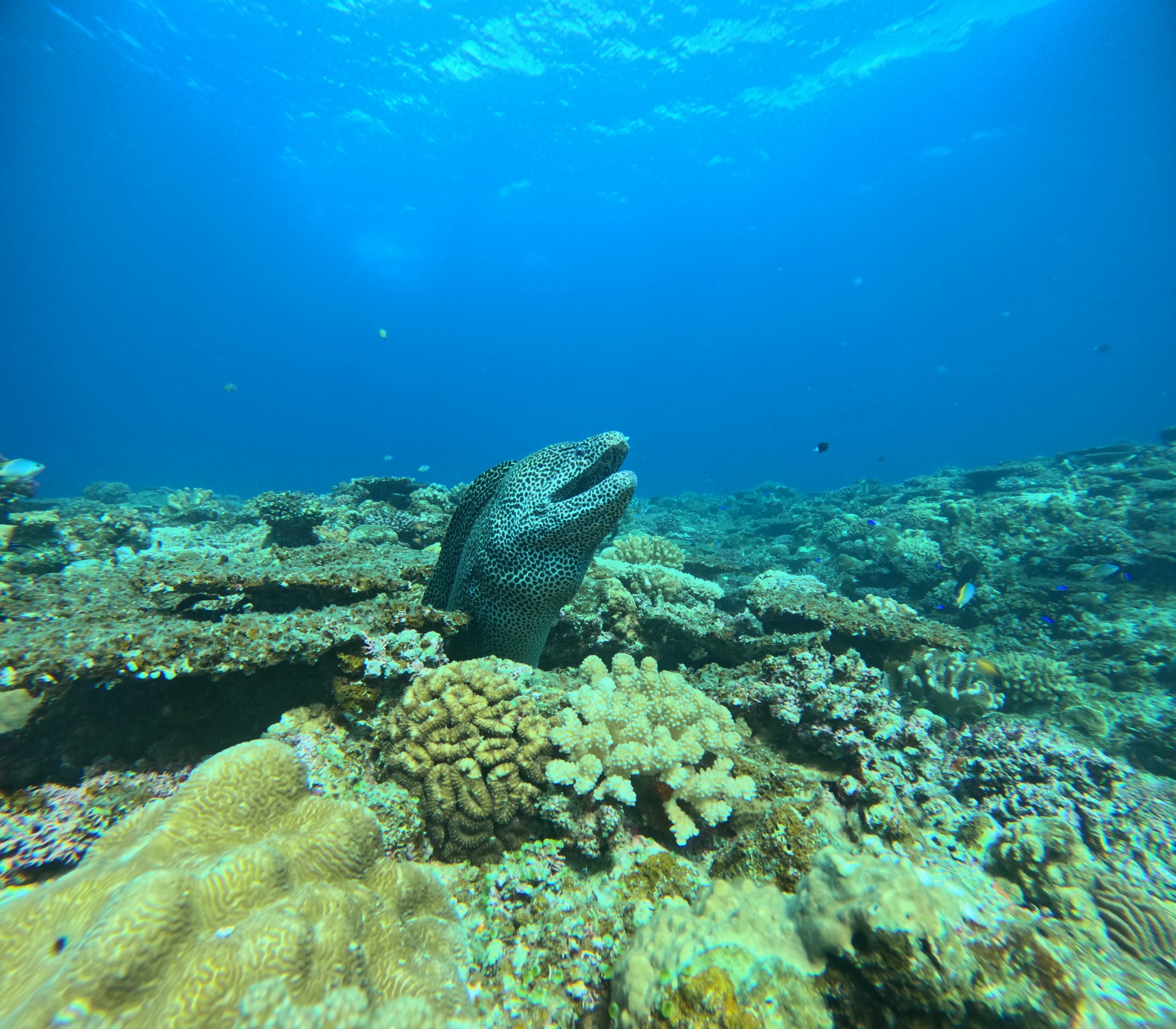 2024年は沖縄本島周辺でサンゴ白化の報告が相次ぎ、恩納村でも同様に白化が発生しました。高水温が続いたことで徐々に白化したサンゴが死滅し藻が付着していきました。1998年に大規模な白化現象がありましたが、それに匹敵するとも言われています。2025年は高水温による白化は見られなかったが、レイシガイダマシの食害が目立った。昨年大きく減少したサンゴが増えてくるには環境と時間が必要だと思われます。